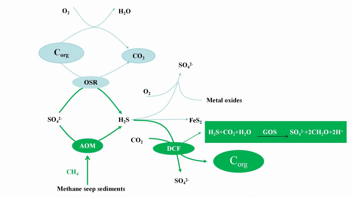 近日,国际著名地学期刊《Global and Planetary Change》(中科院一区TOP,IF:4.0)以“The relationship between anaerobic oxidation of methane and dark carbon fixation in methane seep sediments”(甲烷渗漏区沉积物中甲烷厌氧氧化作用与暗碳固定之间的关系)为题,在线发表了广州海洋局邓义楠团队关于甲烷渗漏区有机质来源的最新研究成果。研究发现,在甲烷渗漏区强烈的甲烷氧化作用(AOM)会导致还原性硫化物明显的富集。还原性硫化物的富集、转移和氧化等过程为微生物参与的二氧化碳暗固定机制和微量元素循环提供了有利的发育环境。