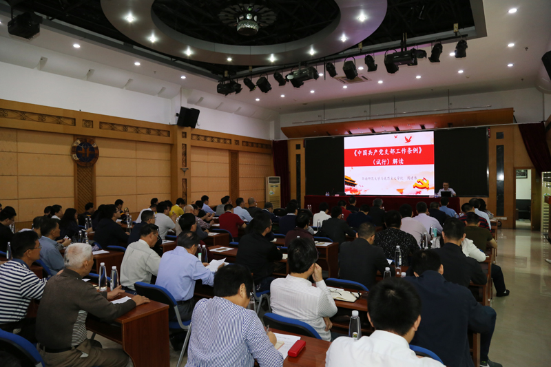会上,周建伟教授从党支部工作条例出台的背景、主要内容、对党支部工作的基本要求、如何规范有效开展组织生活和加强支部委员会建设等方面进行了全面深入的解读。报告内容丰富、深入浅出、分析透彻,具有很强的针对性、指导性和实践性。