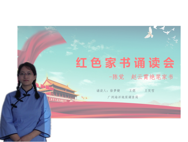 广东省直机关公布了“弘扬红色家风 传承红色基因”诵读活动评选结果,广州海洋地质调查局天然气水合物工程技术中心(以下简称“工程中心”)参赛的诵读《陈觉 赵云霄绝笔家书》作品,喜获省直机关红色家书诵读活动三等奖。