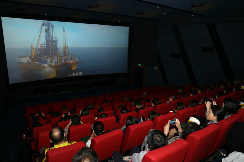 观影过程中,一系列重大科技成果、一系列超级工程和背后的故事,使干部职工们为国家发展取得的伟大成就而震撼。尤其在看到由广州海洋地质调查局承担的我国海域首次天然气水合物试采出现在银幕时,干部职工纷纷拿起手机,留下影像。广海局干部职工纷纷表示,为首次海域天然气水合物的成功试采倍感自豪。