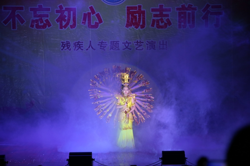 文艺晚会以“不忘初心·励志前行”为主题,演员们通过美妙的歌声、优美的舞蹈、高超的绝技展现了自强不息的精神品格和积极向上的生活态度。歌曲《一壶老酒》和《感恩的心》在母亲节前夕唱出天下儿女对母爱的心声;舞蹈《雄鹰之翼》和歌曲《我是一只小小鸟》演绎出怒放的生命对美好生活的向往;舞蹈《雀之灵》和绝技《太空漫步》展现了艺术的空灵和生命的力量;川剧变脸和魔术表演更展现了传统技艺的神奇与奥妙……20多名聋哑演员演绎的压轴大戏《千手观音》带给全场最热烈的视觉震撼,整场演出在欢快祥和的氛围中圆满结束。