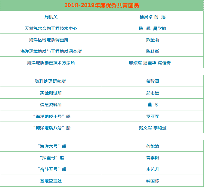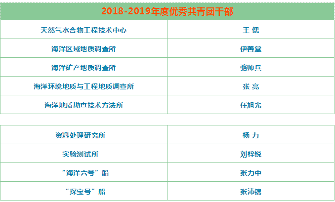2018-2019年度广州海洋地质调查局“优秀共青团员”“优秀共青团干部”“先进团支部”名单