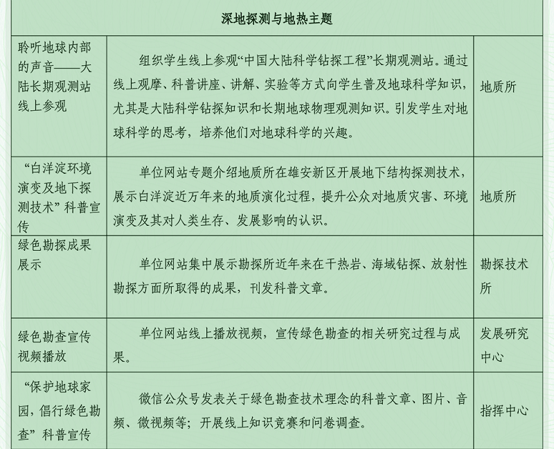 2020年4月22日是第51个世界地球日,主题为“珍爱地球 人与自然和谐共生”。为贯彻习近平总书记提出的“科技创新、科学普及是实现创新发展的两翼”重要指示精神,自然资源部中国地质调查局结合各地区疫情防控要求和实际情况,围绕宣传主题和局中心工作,积极开展地球日主题宣传活动。
