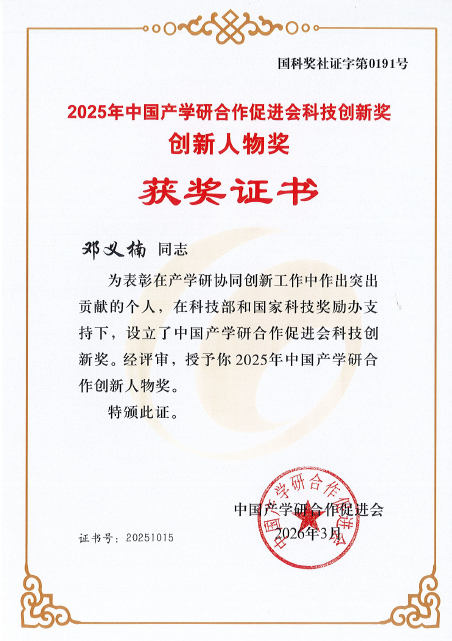 中国产学研合作创新人物奖是经科技部和国家科技奖励工作办公室批准设立的全国性奖项,旨在表彰在产学研用深度融合、科技自立自强、现代化产业体系建设中作出突出贡献的先进科技工作者,是我国产学研界的最高荣誉。