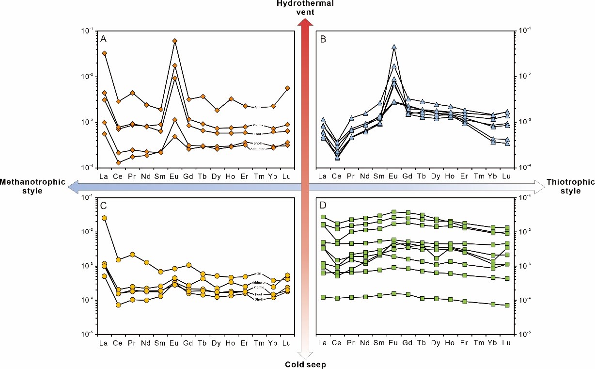 图3 不同流体渗漏环境和营养方式双壳类生物研究元素特征