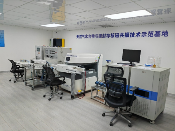 目前,示范基地的核磁共振系统磁场强度为0.3±0.05T,射频输出功率>300W,CPMG最大回波个数18000。同时加配了可变温高压驱替系统、原位成像系统、选层梯度扫描模块、T1-T2二维核磁模块、超临界二氧化碳模块等功能,可在不同温压条件下开展储层孔隙度、孔径分布、含水率、渗吸能力及渗透率等测试分析和水合物合成分解模拟实验,可为天然气水合物、非常规油气、碳封存等领域储层演化研究提供有力的技术支撑。为充分发挥示范基地功能,支撑核磁技术创新发展,该系统已面向社会开放使用,欢迎广大科研人员预约开放机时,开展合作研究。