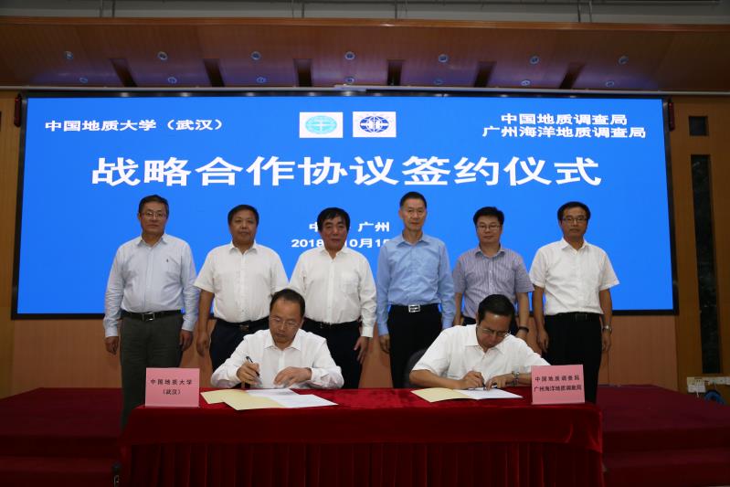 10月15日下午,自然资源部中国地质调查局广州海洋地质调查局与中国地质大学(武汉)在广州就推进双方合作交流进行深入研讨,广州海洋局局长叶建良和学校党委书记何光彩共同签署战略合作协议。